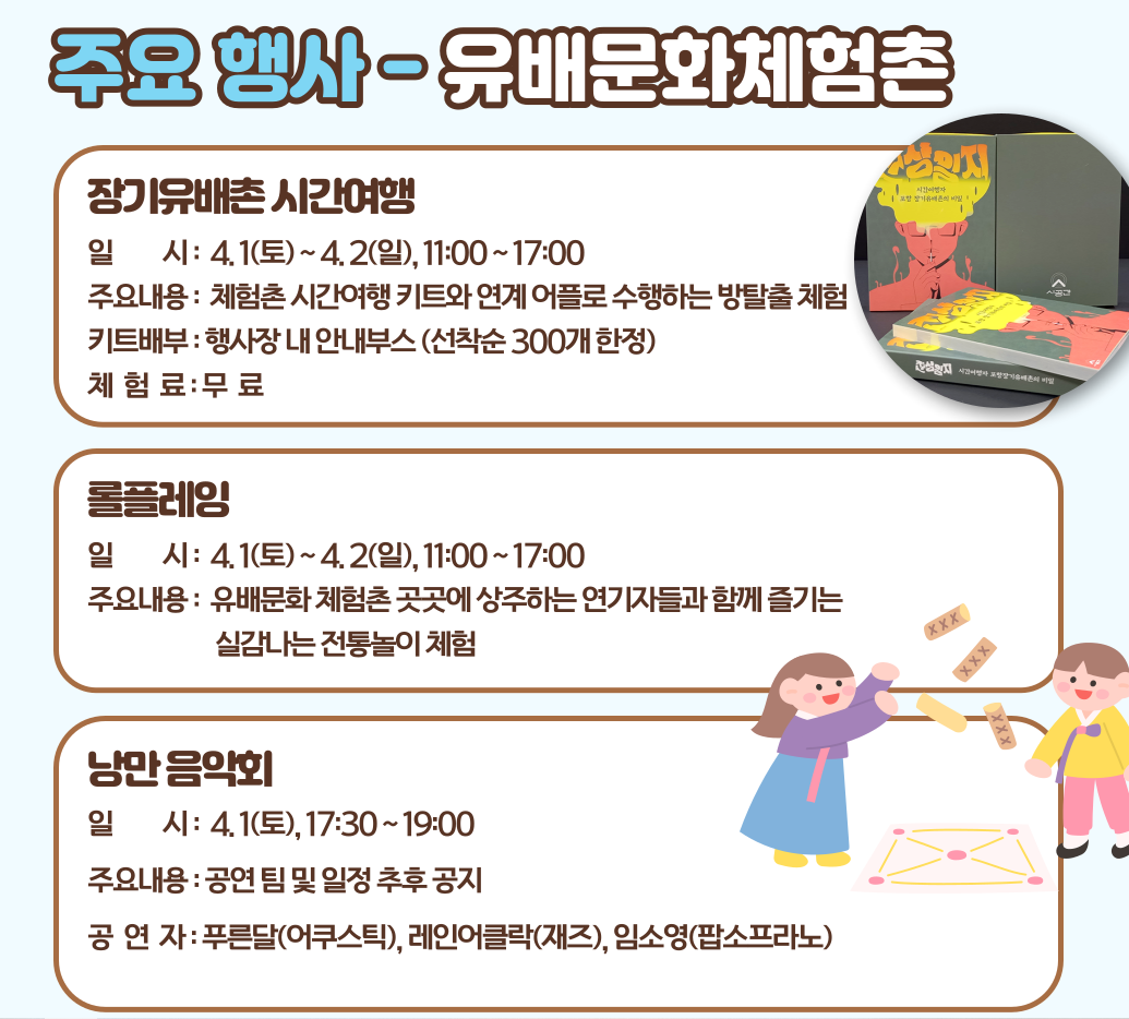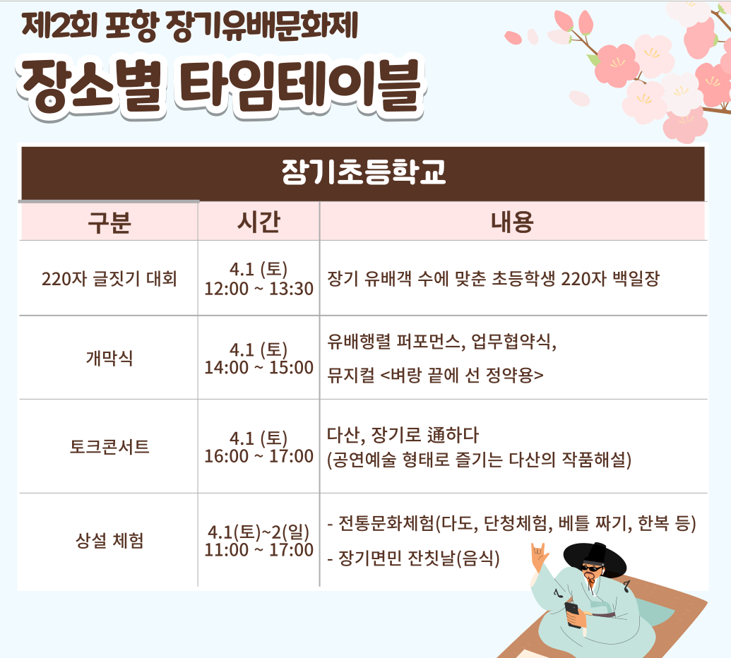 포항문화재단은 오는 4월 1일부터 2일까지 장기초등학교과 유배문화체험촌 등에서 장기의 유배문화를
